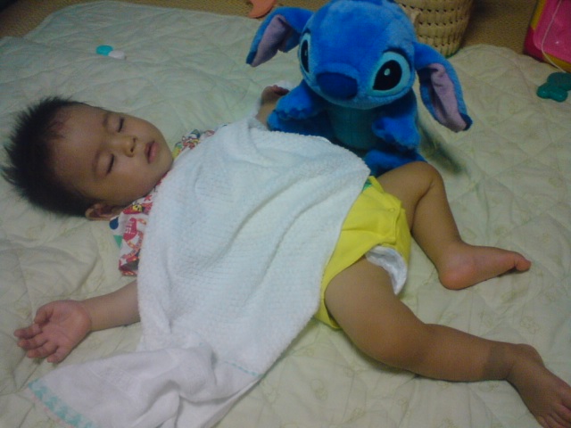 ちなみにこの写真は、遊び疲れた今日の息子の様子です。